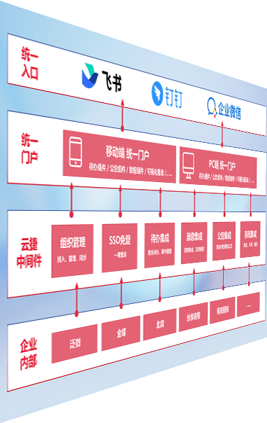 对协作平台提供支持服务,,支持企业应用与协作平台对接,,,包含组织同步、、、消息集成、、、、待办集成等。。。。支持目前主流的协作平台:钉钉、、企微和飞书。。